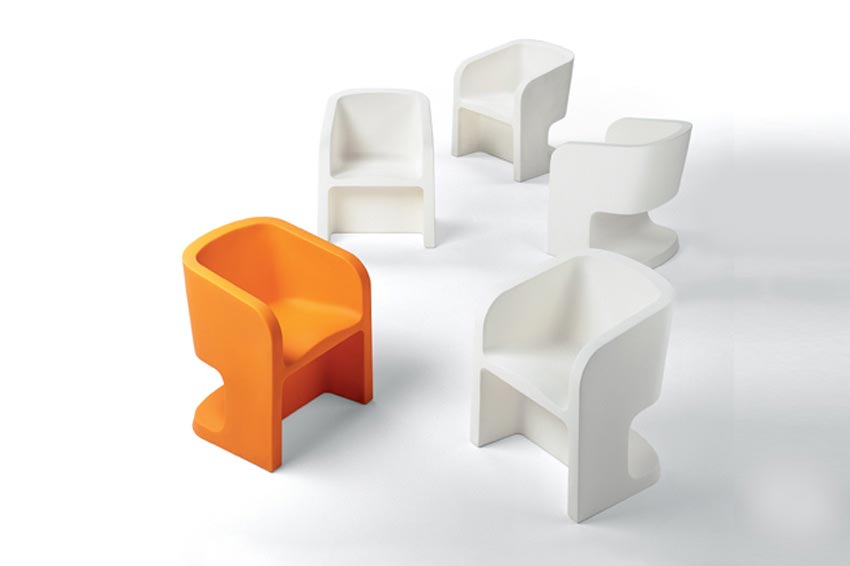 Armchair made of thermoplastic material and produced with rotational moulding technology