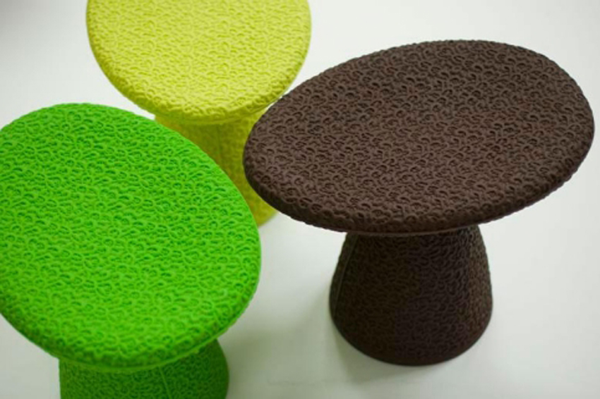 Marcel Wanders has experimented with the potential offered by rotational moulding to design a stool with an irregular, ironic shape which is reminiscent of a mushroom.