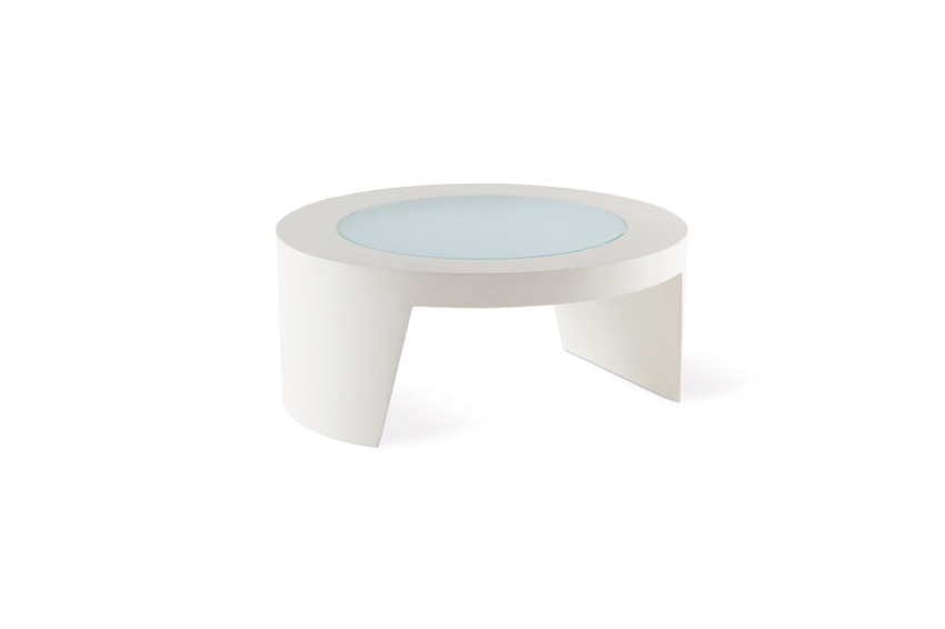 Tao is a low table in rotomoulded polyethylene on which is placed an opaque glass top.