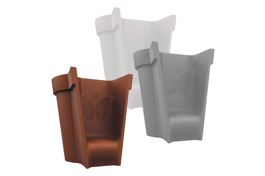 +13 is a pot'n chair produced in polypropylene white, cement grey and brick red.