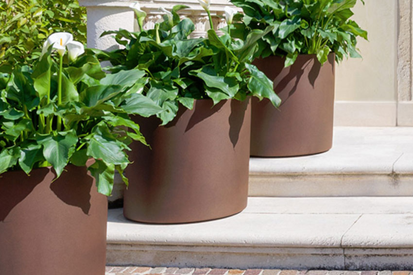 The round flower pot Genesis is particularly suitable for decorating terraces and gardens.