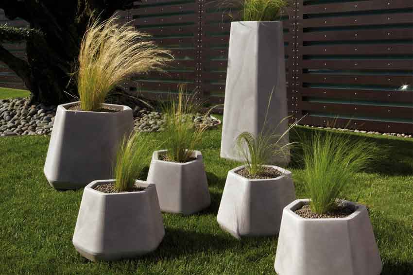 Ops is a range of pots with modern design and with an advantage, thanks to their poligornal shape, they fit all corners, in indoor and outdoor. A composition of OPS in different sizes and colors is particularly nice to see.
