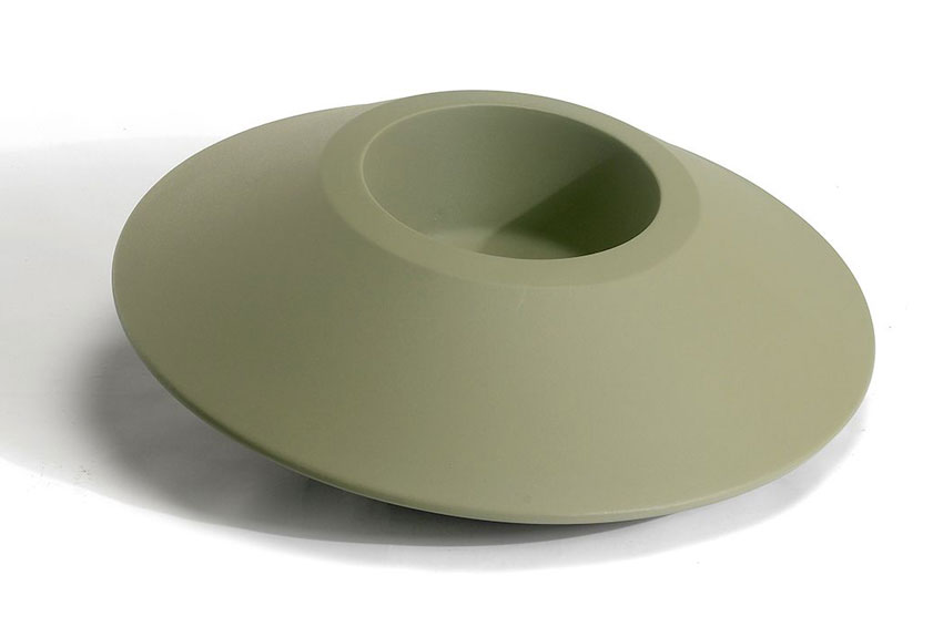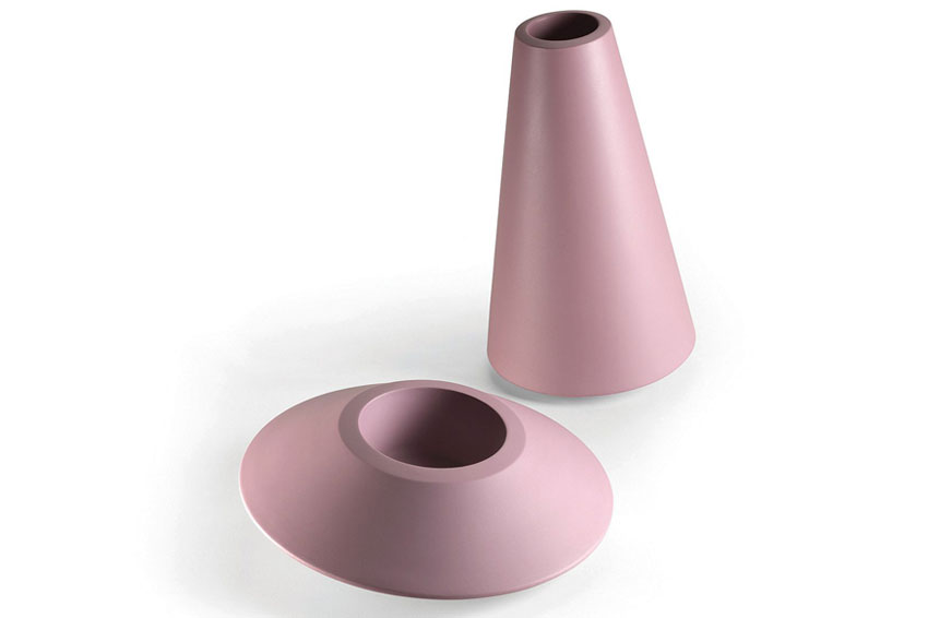 Pair of vases that can also live individually. The support base is not orthogonal to the ground and, therefore, the vases can rotate.