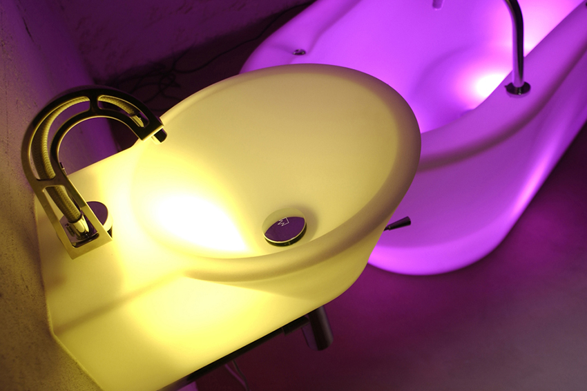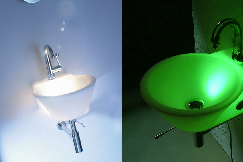 The colorful Light washbasins offer a nice and welcome alternative for the traditional white washbasin. The revolutionary design, awarded the German DesignPlus award, made out of polyethylene allows for the usage of spectacular colors and even a combination with lights.