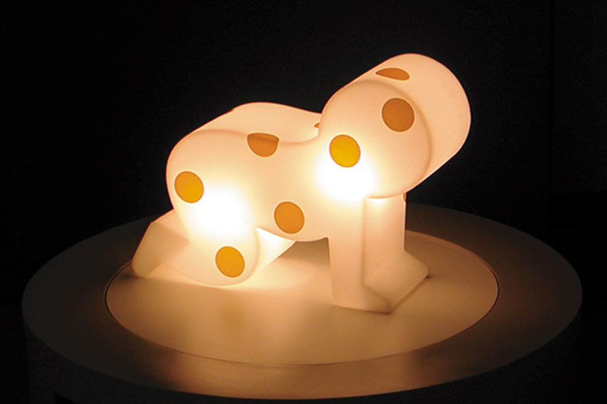 Colourful stickers dot it and turn it into the perfect item for spaces dedicated to children. Its playful shape livens up all furnished areas.