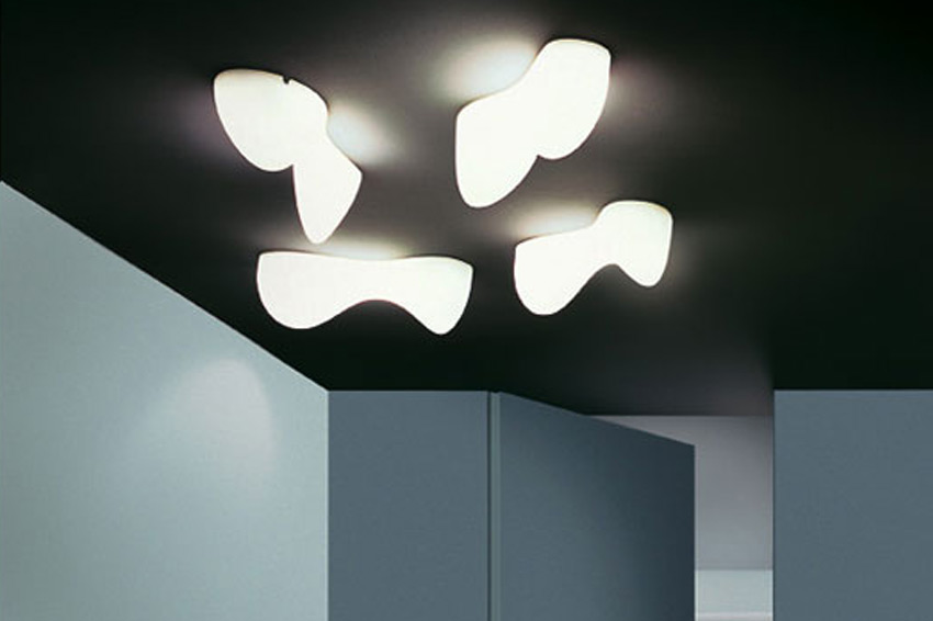 Lamp in two sizes, with white or coloured moulded polypropylene diffuser. Also available as outdoor light.
