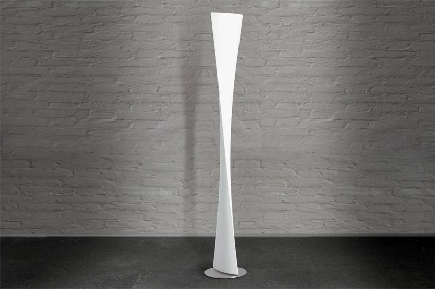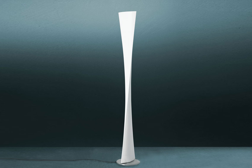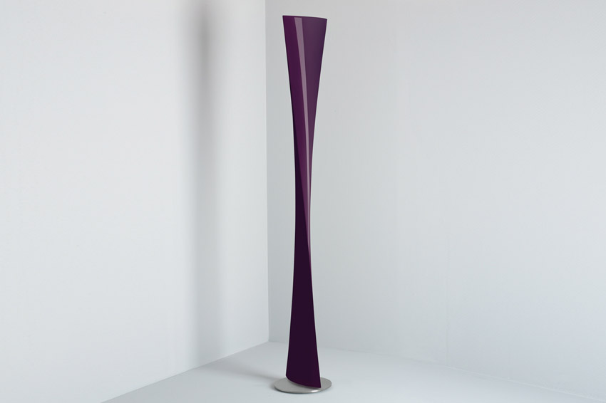 Floor lamp with varnished plastic structure manufactured with rotation moulding process. Satin steel base.