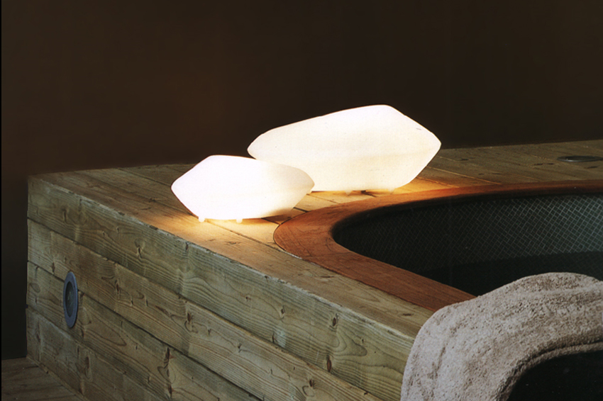 They're made of polyethylene and come in a variety of shapes, just like natural stones. But unlike natural stones, these fluorescent lamps give off a nice diffuse light.