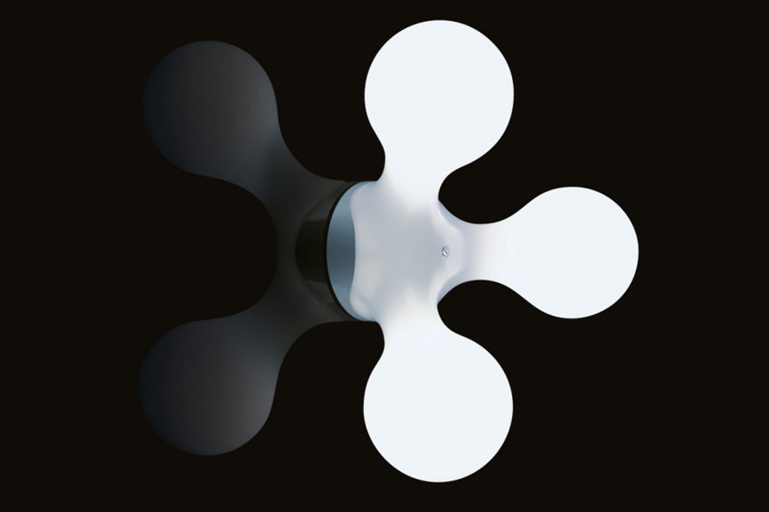 Lampada roto stampata in polietilene dotata di sei sorgenti luminose interne e completata da un cavo di alimentazione. Disponibile nella versione a sospensione, parete e terra.