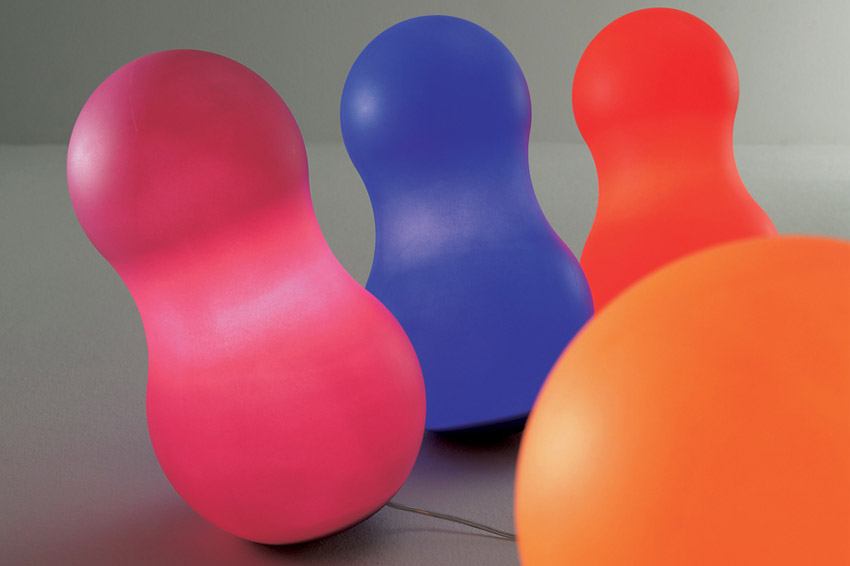 Lampada a dondolo in polietilene colorato in massa. Ideale per il giardino e le aree esterne. Realizzata con un polimero ad elevata resistenza ai raggi UV ed alle alte temperature.