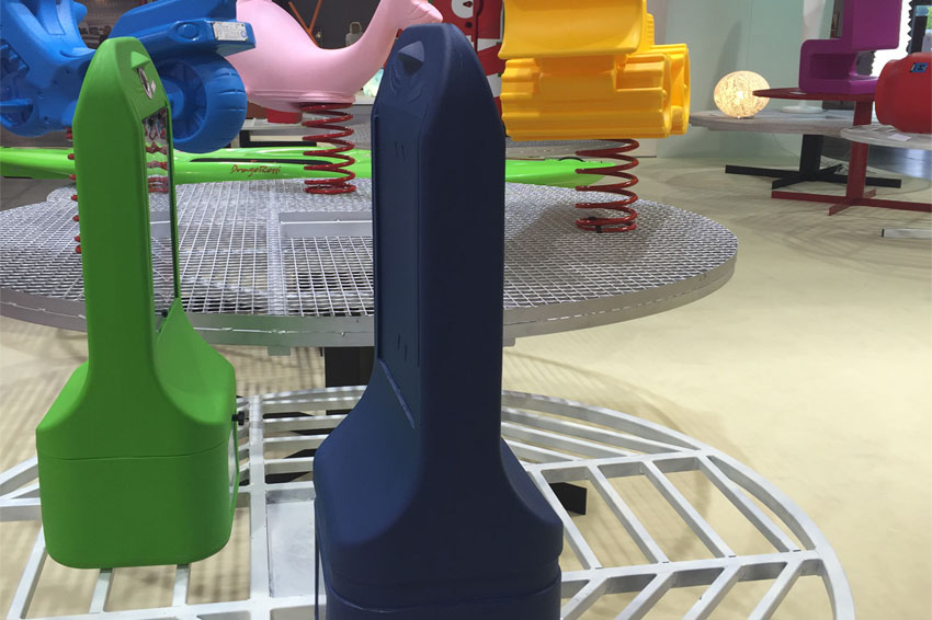 Porta mozziconi in polietilene per arredo urbano. Struttura composta da un contenitore rotostampato provvisto di feritoia per l’introduzione dei mozziconi e di base con fori per il fissaggio al terreno.