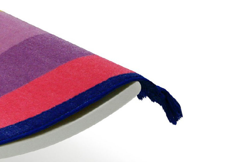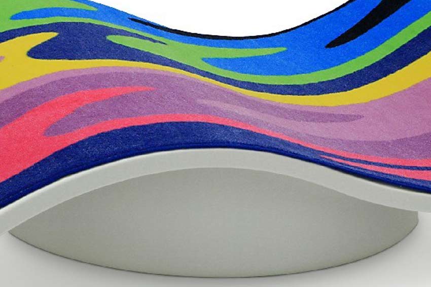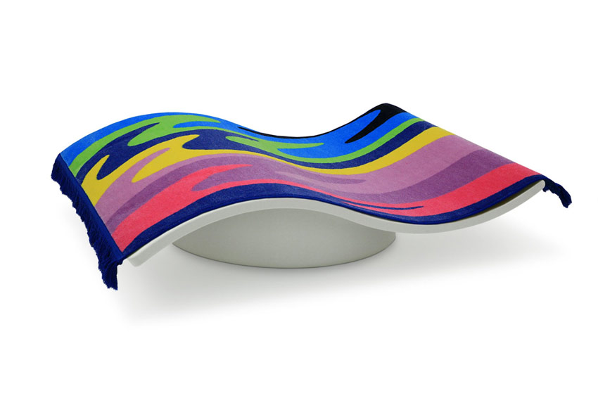 Una sedia magica concepita per essere come un tappeto volante. La base è prodotta in polietilene roto stampato mentre il tappeto colorato è in poliammide.