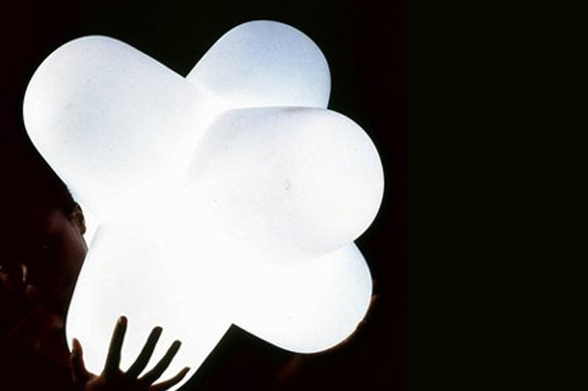Oggetto luminoso impilabile realizzato in polietilene. Utilizzabile come sgabello, scultura luminosa, con l’aggiunta di un piano in vetro, permette di essere usato come tavolino.