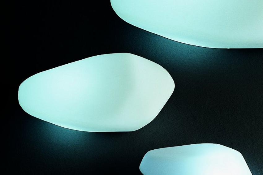 Realizzati in polietilene attraverso una varietà di forme e dimensioni, le lampade Stone appaiono come sassi naturali. Ma, a differenza di questi, sono in grado di emettere una piacevole luce diffusa.