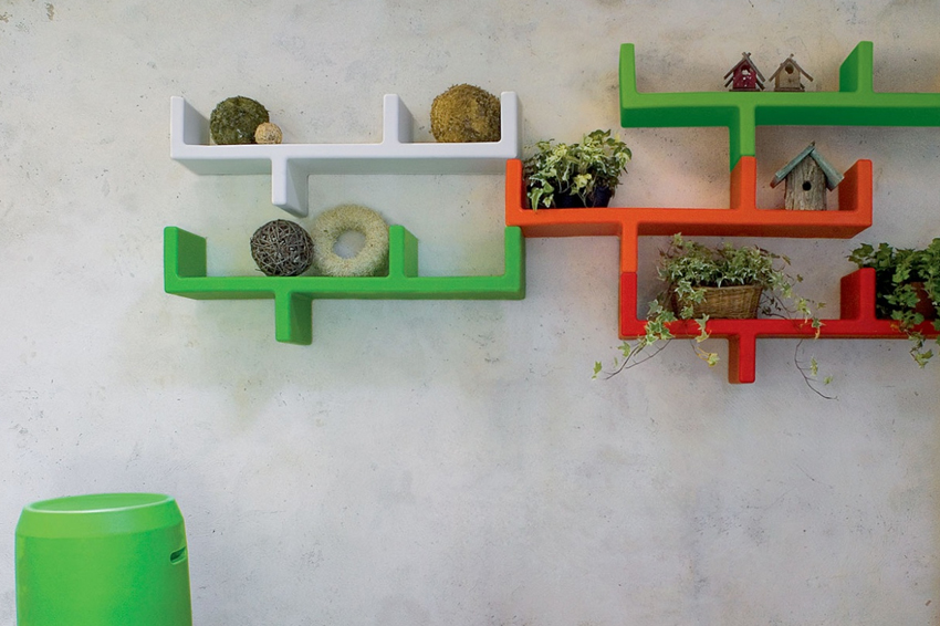 Sistema di mensole che permette di essre usato singolarmente o in combinazione con diversi elementi. Prodotto in polietilene rotostampato, è resistente all’acqua e ai raggi solari.
