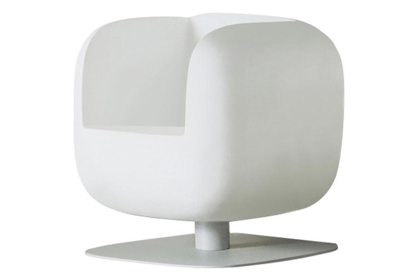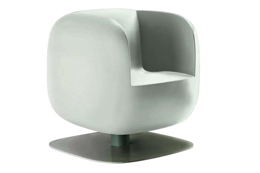 Poltroncina mono scocca ideale per interni e aree d’attesa. Realizzata in polietilene con struttura in alluminio girevole e molleggio per il ritorno in posizione.