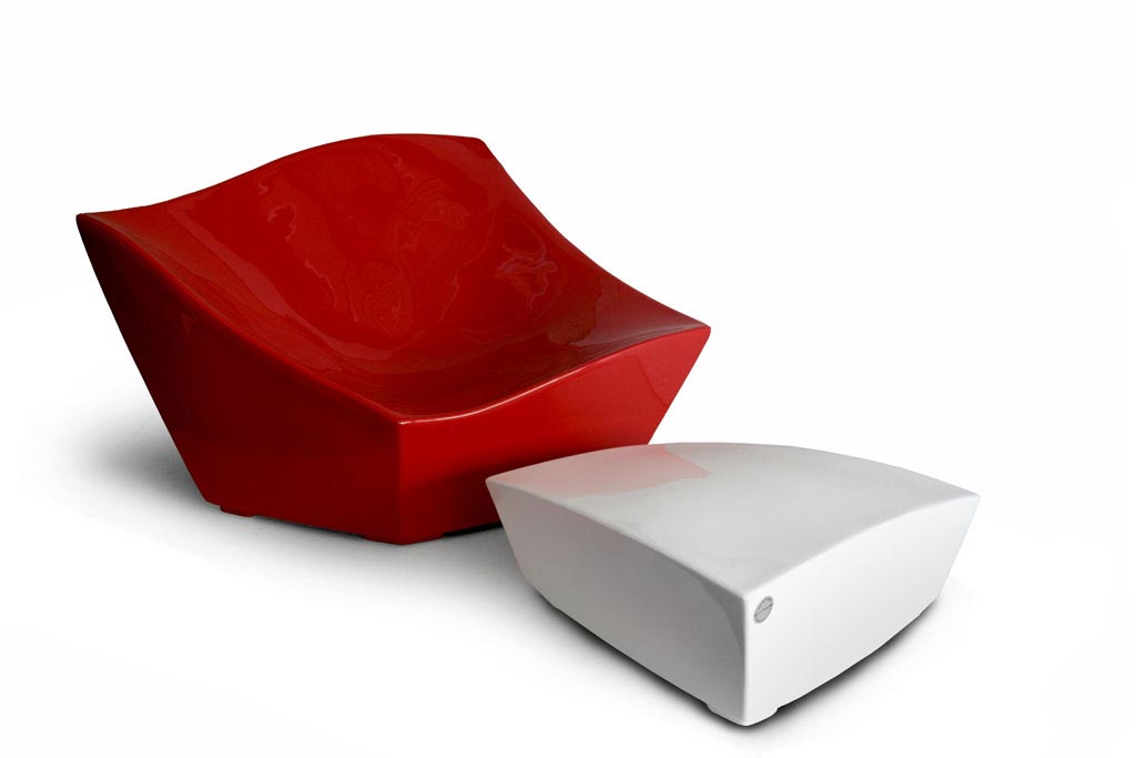 Prodotto per uso esterno e completato da un cuscino accessorio resistente all’acqua; nella versione per interni è accessoriato con cuscino di seduta in pelle o tessuto.