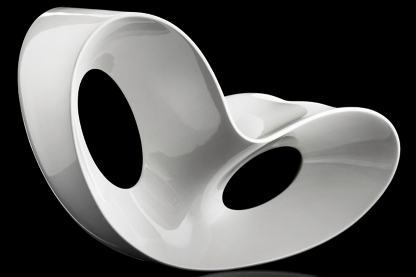 Voido è una poltrona a dondolo in polietilene dalle forme arrotondate, prodotta con stampaggio rotazionale.