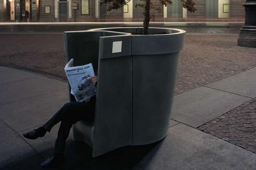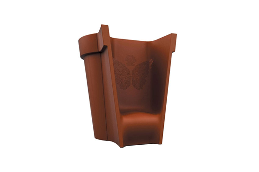+13 è un vaso e sedia realizzato in polipropilene bianco, grigio cemento e rosso mattone.