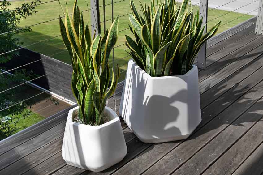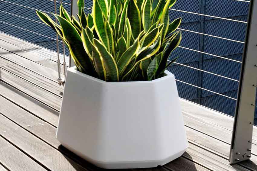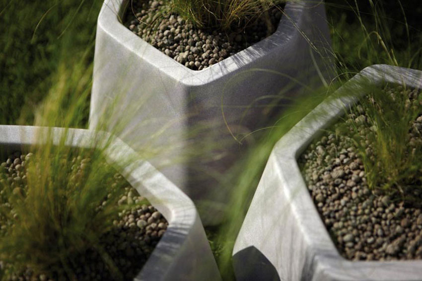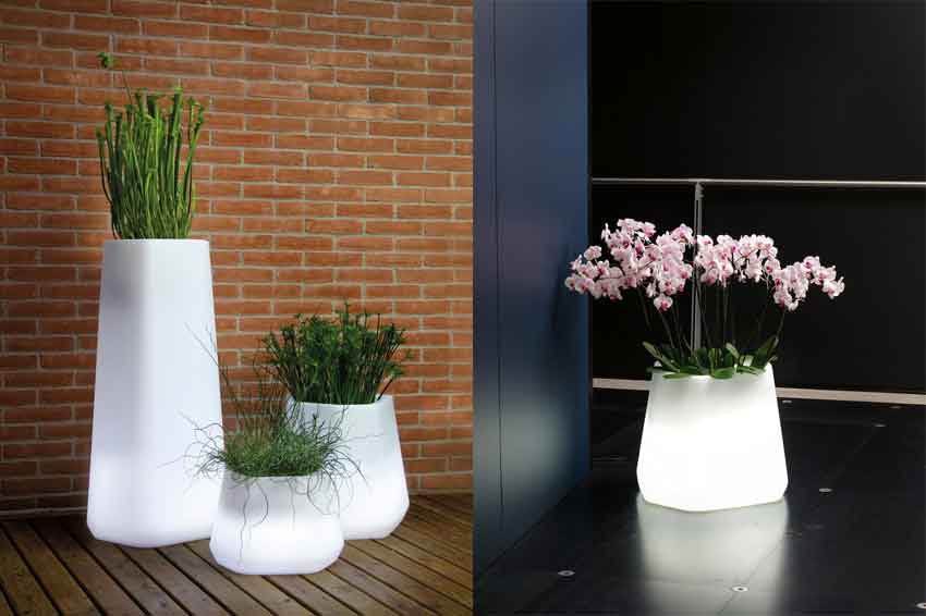 Ops é una gamma di vasi dal design moderno e con un vantaggio: data la forma poligonale di varia ampiezza, si adatta a tutti gli angoli in interni e esterni. Risulta particolarmente estetica una composizione di varie misure e colori.