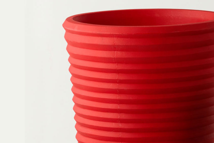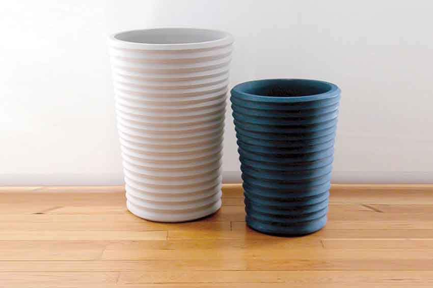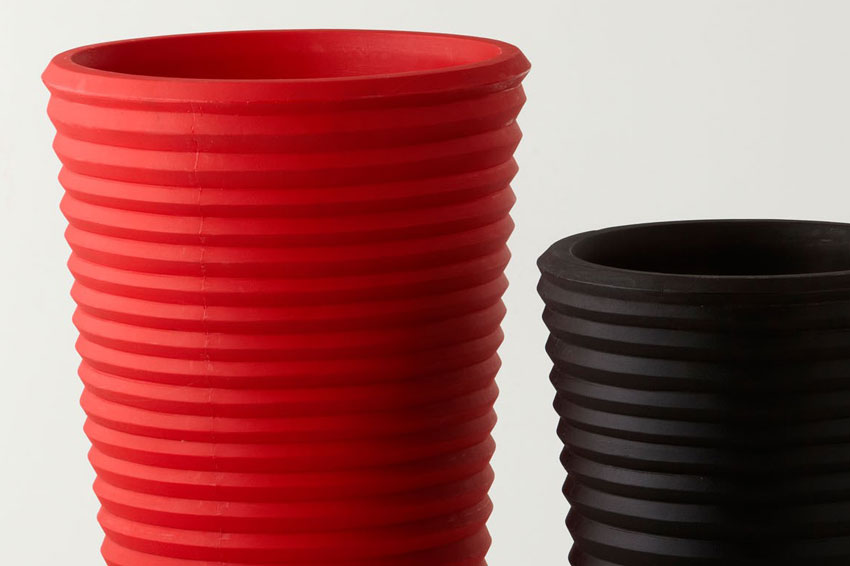S-Pot è un vaso conico sfaccettato con striature orizzontali. Grazie alla sua forma e alle sue varie dimensioni si adatta a qualsiasi ambiente, interno ed esterno.